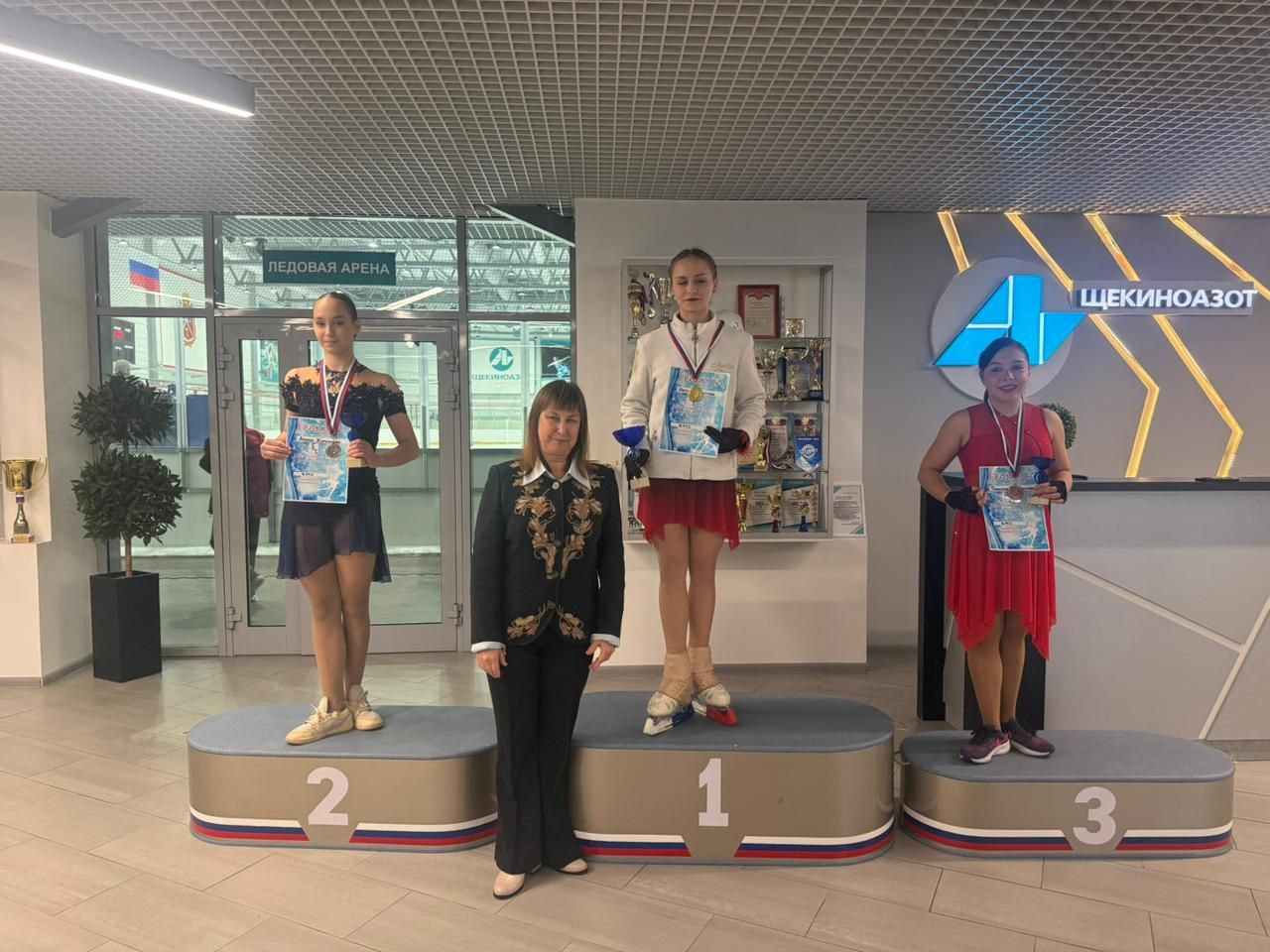 Разряд КМС: 🥇 1 место: Глотова Наталья 🥈 2 место: Коршунова Арина 🥉 3 место: Мартынова Таисия 1 спортивный разряд: 🥇 1 место: Яркина Валерия (МБУС «Ледовый Дворец» г. Новомосковск) 🥈 2 место: Луценко Полина (ГУ ТО ДО ОКСШОР г. Тула)