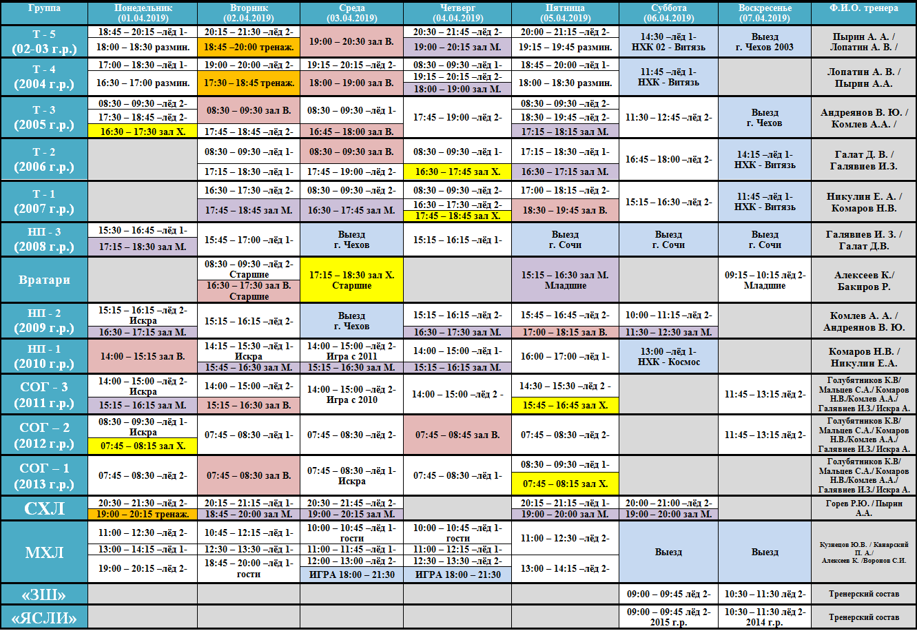 • Расписание ДЮСШ «ВИКТОРИЯ»