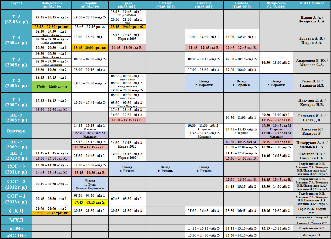 • Расписание ДЮСШ «ВИКТОРИЯ»
