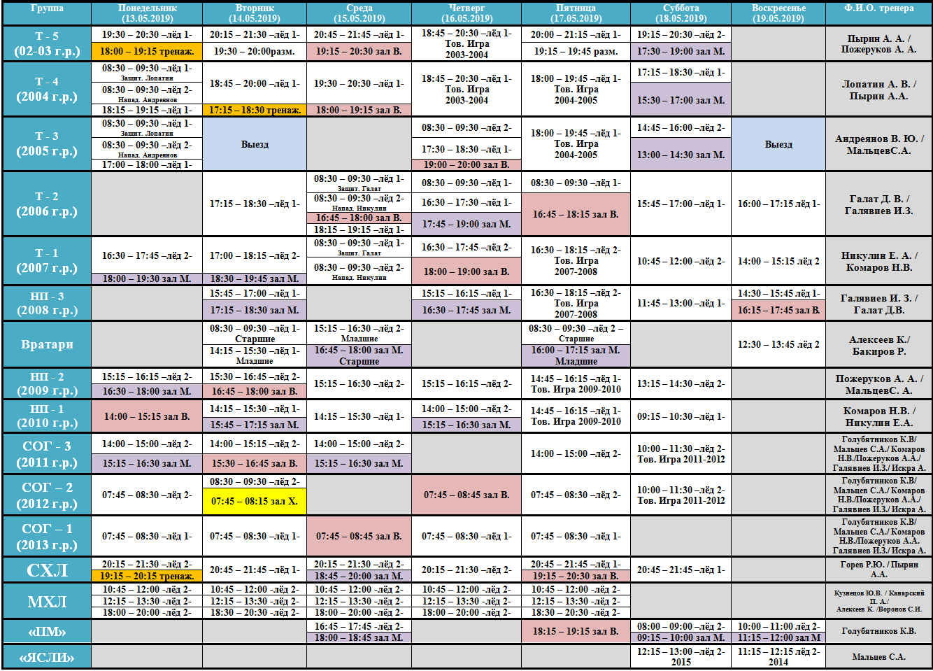• Расписание ДЮСШ «ВИКТОРИЯ»